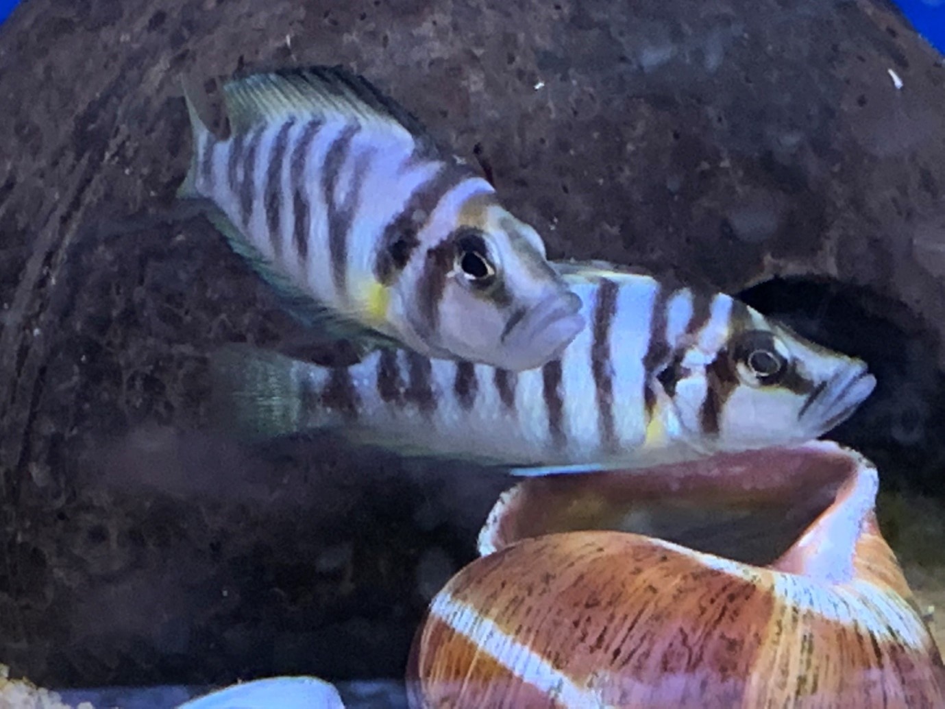 Lake Tanganyika is home to a fantastic array of cichlids, most of which are found nowhere else. These fascinating fishes have evolved many different forms, including the high-bodied Altolamprologus which can hunt small prey in tight crevices. To better exploit the opportunity presented by empty snail shells, which don’t dissolve in the lake’s mineral-rich water, Sumbu shell-dwellers (Altolamprologus sp. ‘Sumbu shell’) remain small and unlike other forms of A. compressiceps, permanently reside in shells. Their care is identical to their larger kin, with the obvious difference being the need to provide empty shells as shelter. This batch were looking good at our Weybridge store.