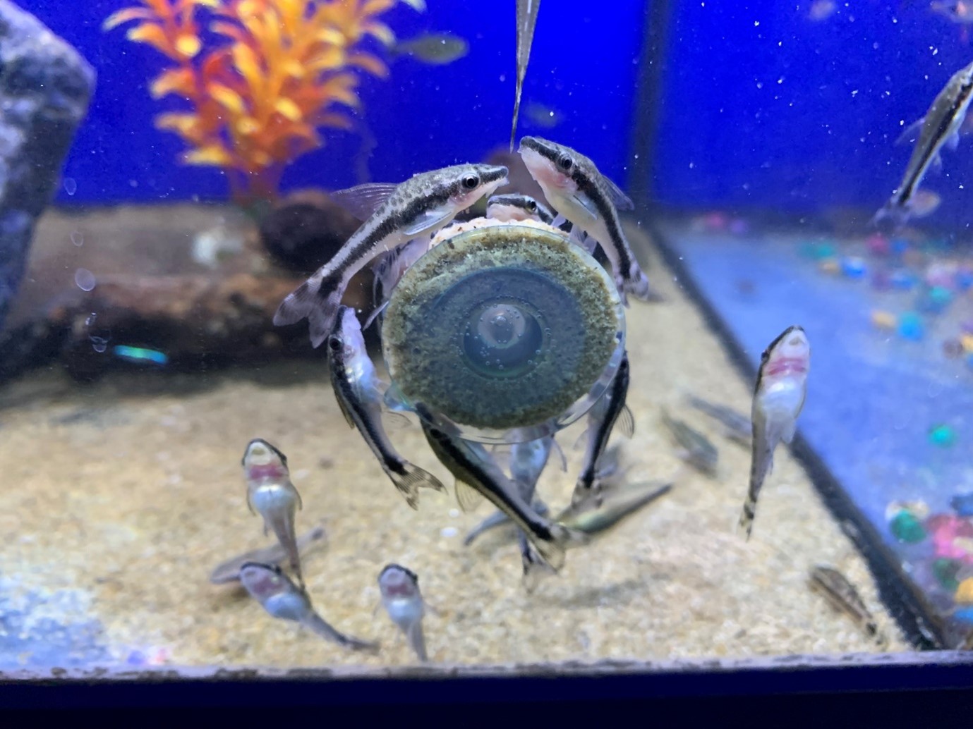 The perfect algae eater for planted set ups, ‘Otos’ (Otocinclus sp.) are shoaling catfish that love to graze algae from plants and hard surfaces. This batch at our Cirencester store were enjoying an algae-based meal designed for grazers.