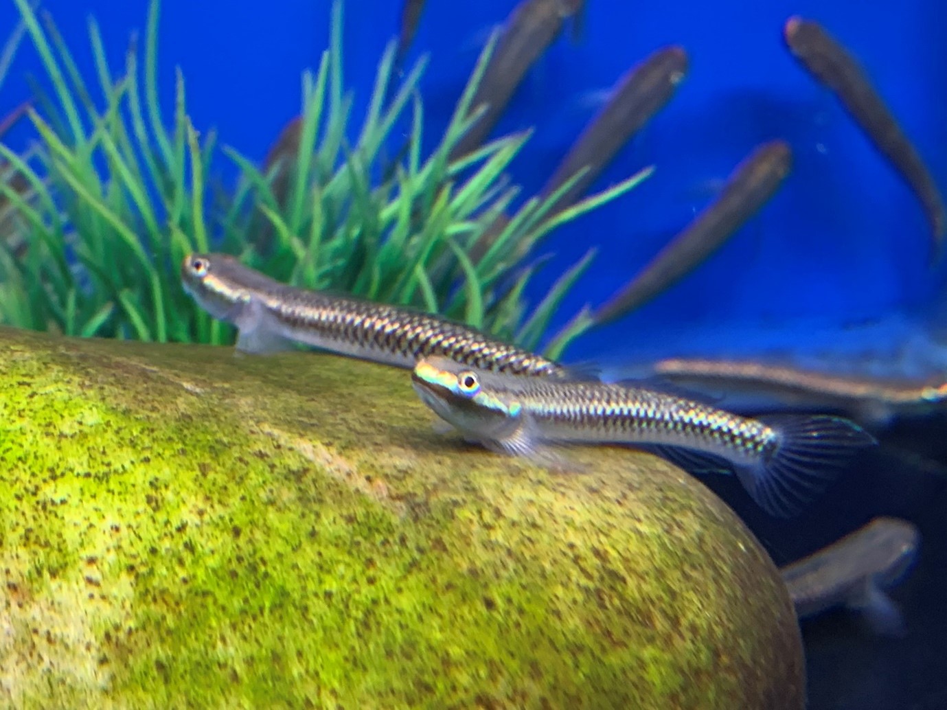 A taste for algae and plenty of character make the freshwater gobies of the genus Stiphodon popular pets. Native to fast-moving streams, they are happiest when given high-oxygen environments with brisk water movement. These Cobalt blue gobies (Stiphodon semoni) can be hard to identify and some batches may be S. atropurpureus or S. elegans. Fortunately, care requirements are identical and this batch at Reefkeeper Moss End aren’t too fussed about what you call them!
